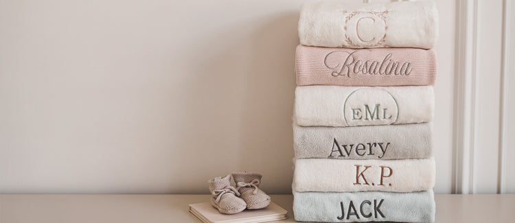 As baby’s constant companion, a baby blanket is one of the most thoughtful gifts you can present to a new parent. An embroidered baby blanket with the child’s name, monogram or initials will instantly become an everyday essential, accompanying the little one from playtime to stroller time to naptime. All our baby blankets are crafted of durable, kid-friendly fabrics that stand up to the rigors of day-to-day usage. If the blanket gets dirty after a trip to the park or a messy meal, simply machine wash on cold and tumble dry low. The baby blanket will emerge looking like new.