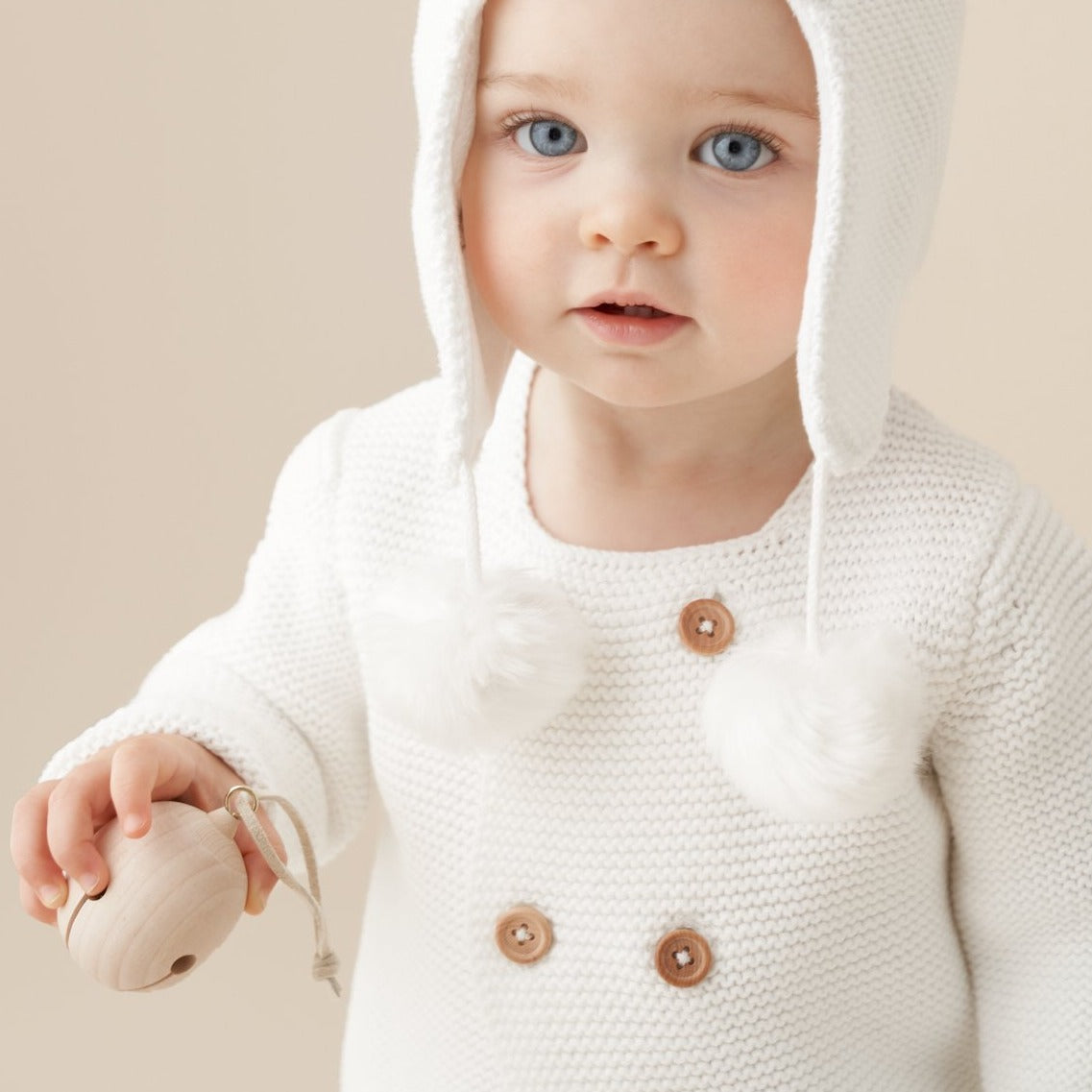 Nothing says luxury baby gift like our soft, chunky, 100% cotton knit baby cardigan from our Sofia + Finn Knit collection. Designed in five beautiful colors, this quality cotton knit baby cardigan with double-breasted wooden button closure detail is sure to be cherished forever. It even comes with a padded hanger to keep it looking as good as new. Pair with one of our Knit Pom Pom Baby Hats and any of our knit baby blankets for the perfect baby gift set.