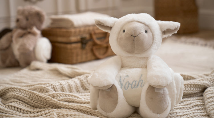 Add a special touch to baby’s nursery with a personalized baby stuffed animal. Little ones love our assortment of baby plush toys from the Bedtime Huggie collection, including adorable elephants, puppies, giraffes, bunnies, unicorns, mice, lambs and bears. Adding an extra-special twist, the baby stuffed animal is holding a supersoft blanket, which can be embroidered with baby’s name, monogram or initials. Baby will quickly become attached to his or her plush toy Bedtime Huggie, bringing the embroidered blanket and stuffed animal everywhere. Fortunately, it’s easy to care for these soft-but-durable baby plush toys, which will inevitably see their share of adventures. The embroidered blanket can be machine-washed cold and tumble-dried low, while the baby stuffed animal plush toy can be damply wiped and left to air dry.