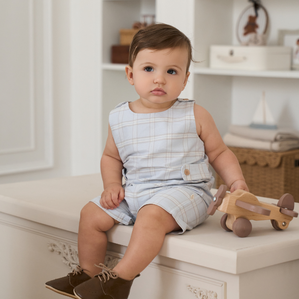 This heirloom worthy Jon Jon features the beloved blue grey plaid reimagined for spring. A timeless silhouette with enduring charm, designed for moments that call for something special yet effortless. Designed to be monogrammed — a quiet detail that makes it theirs.