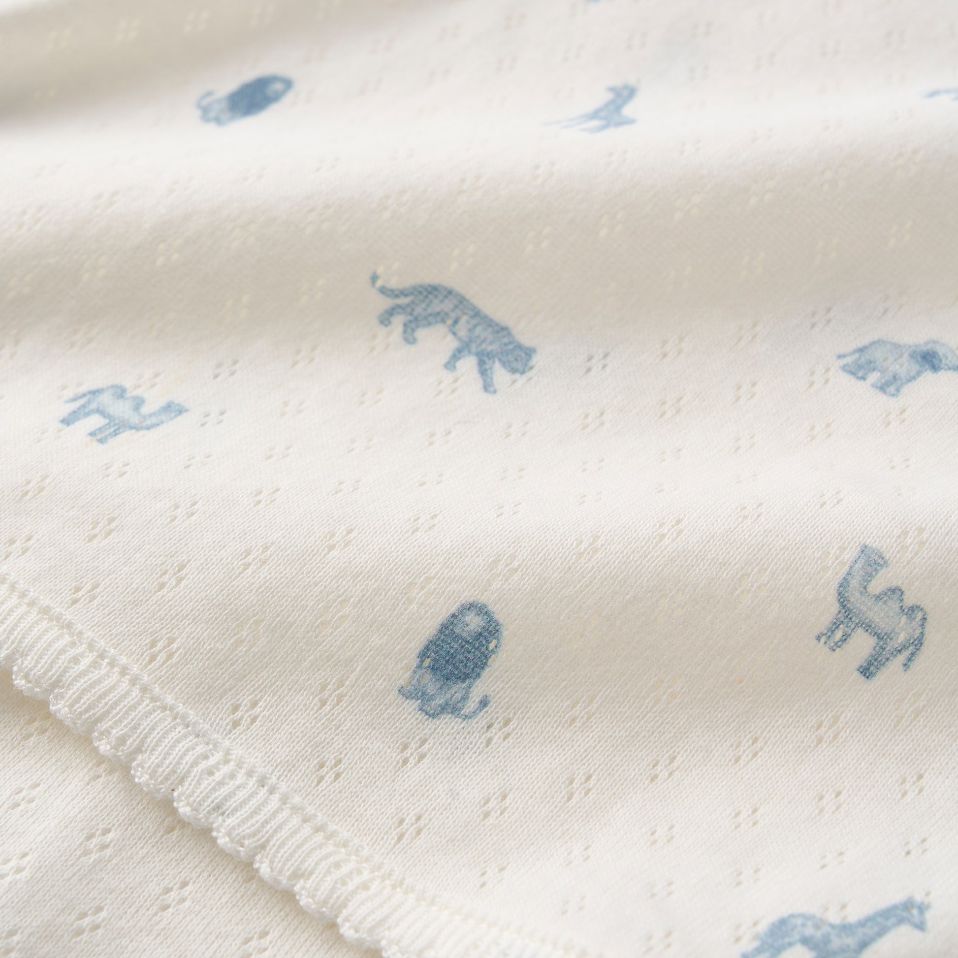 Blue Safari Print Organic Cotton Pointelle Baby Blanket