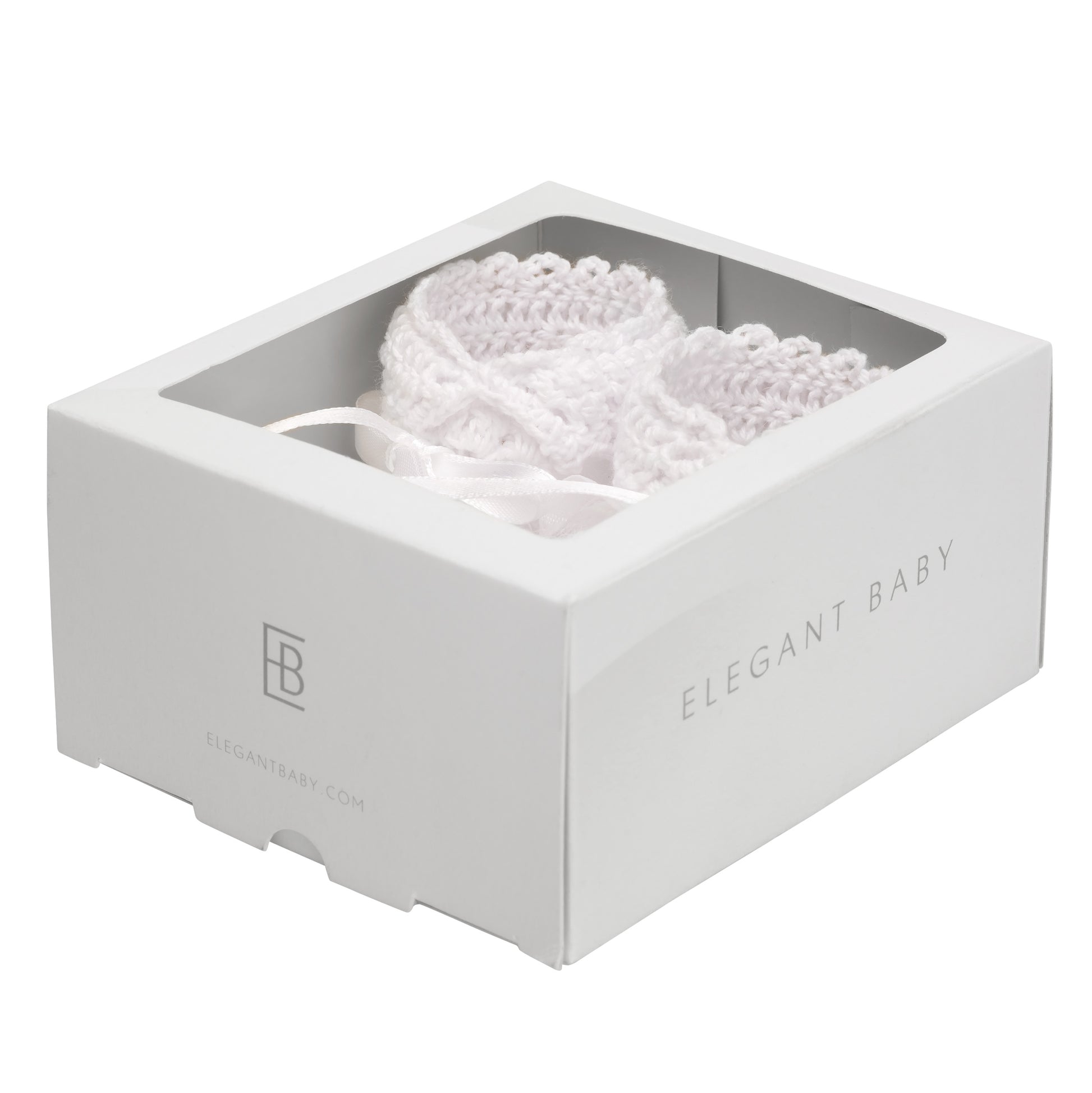 Footwear choice is no longer an issue for baby's christening! Our 100% cotton hand-crocheted booties are the perfect slide-on shoe for every little one's tiny toes.Your baby will enjoy the soft, comfort of these shoes, while parent's will enjoy the chic elegance of the style.