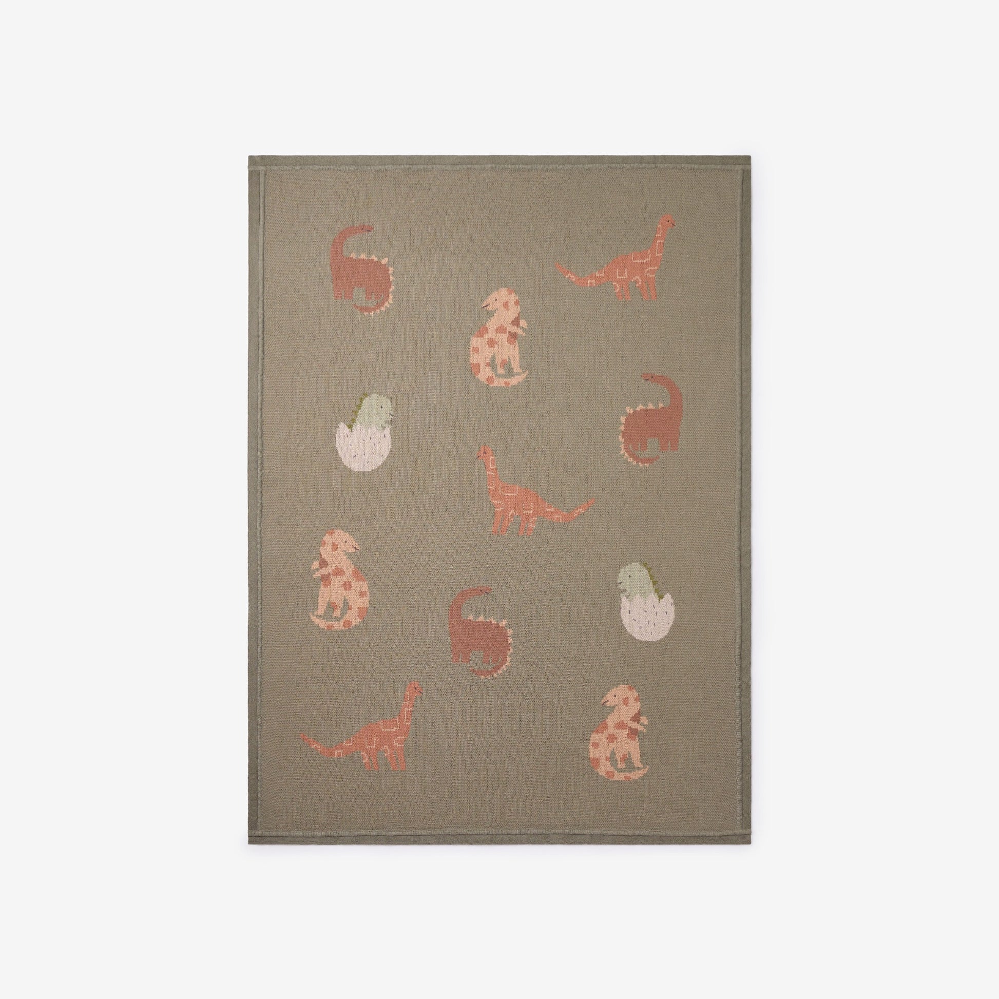 cotton knit baby blanket. Featuring a delightful array of friendly dinosaurs,