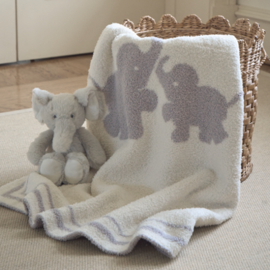 A timeless friend, knit into warmth. Featuring a gentle elephant design and soft gray tones, this plush chenille blanket is crafted with double-sided thickness for year-round comfort. Reversible and incredibly soft, it's destined to become a treasured piece in baby's nursery and your go-to gift.