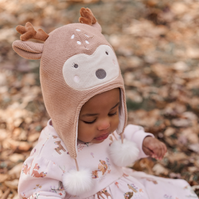 little one cozy and cute with the Fawn Knit Aviator Hat, featuring a soft