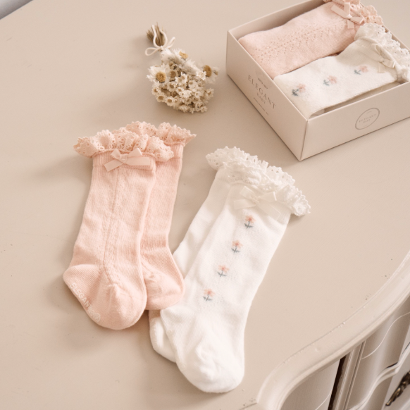 Floral Knee-high Non Slip Baby Socks 2 pack