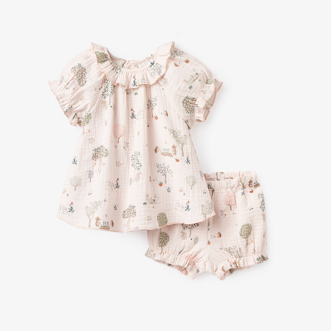 Garden Picnic Organic Muslin Ruffle Collar Top + Bloomer Set