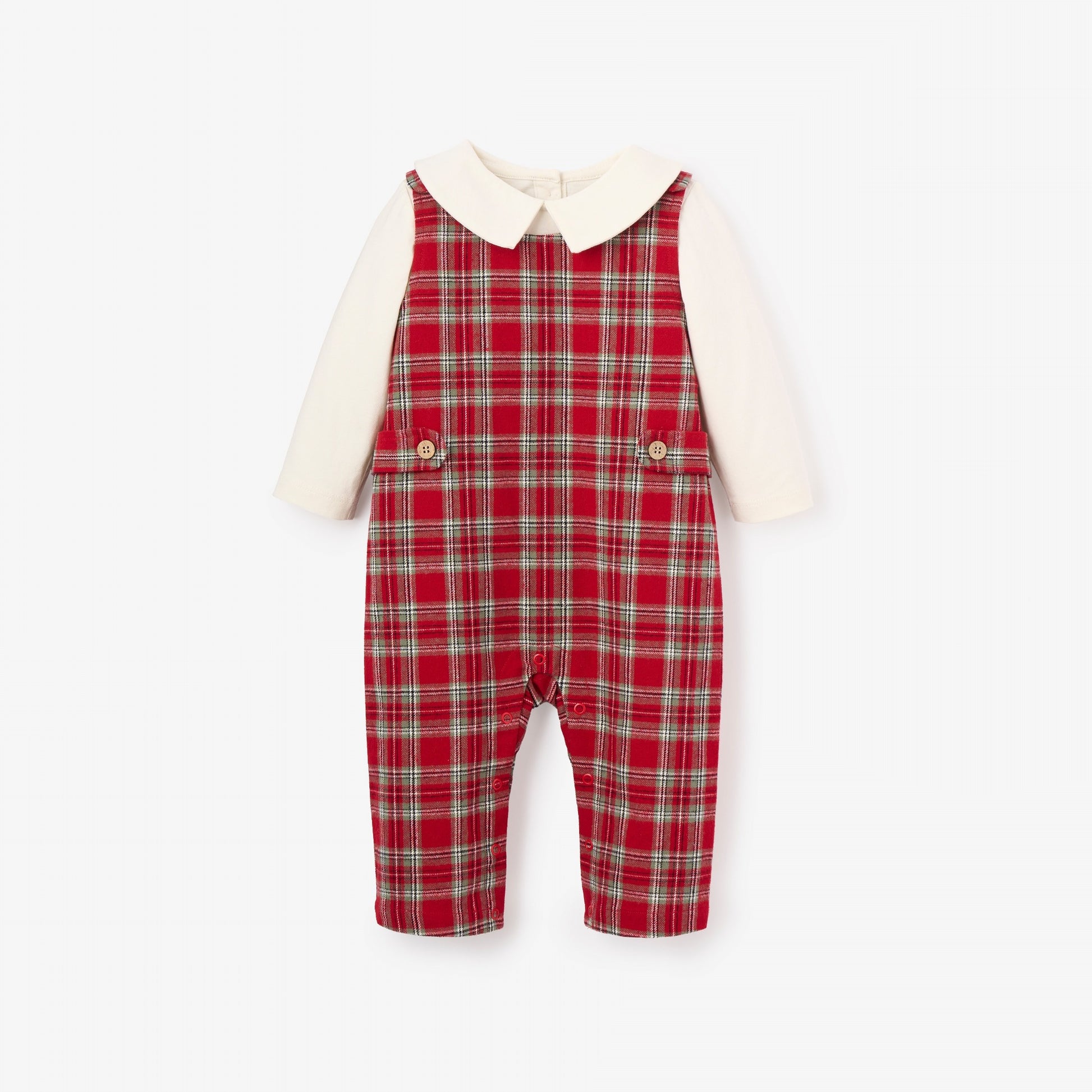 A timeless holiday ensemble, this red tartan Jon Jon and crisp white shirt evoke classic Christmas charm. Designed with heirloom quality and festive tradition in mind, it's the perfect look for treasured family gatherings and seasonal portraits.