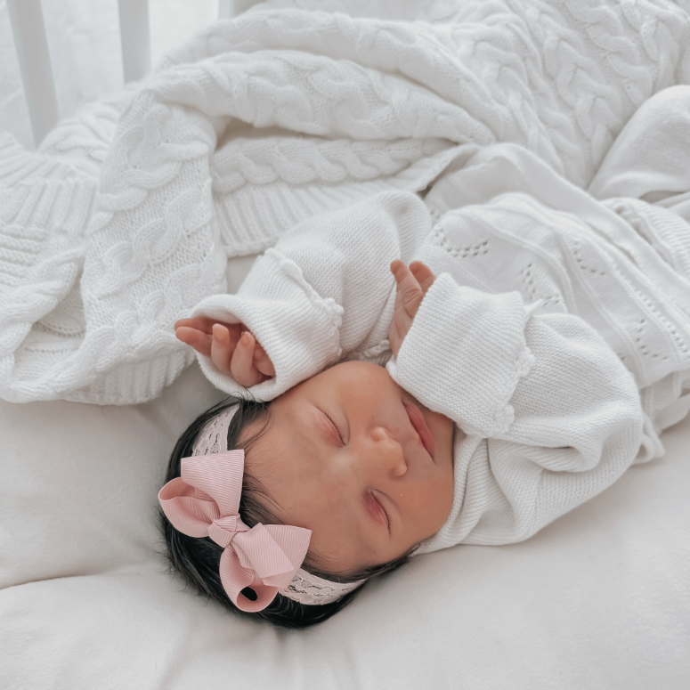 Our Mauve Lace Bow Baby Headband 3-pack set comes in 3 delightful shades to coordinate with every outfit. We made our soft, stretchy baby girl lace headbands with a coordinating grosgrain ribbon to create a simple yet stylish accessory. Fits babies 0-12 months. Make it an extra special gift by pairing it with our Mauve Baby Shark Hooded Bath Wrap or Mauve Fleece Baby Stroller Blanket.