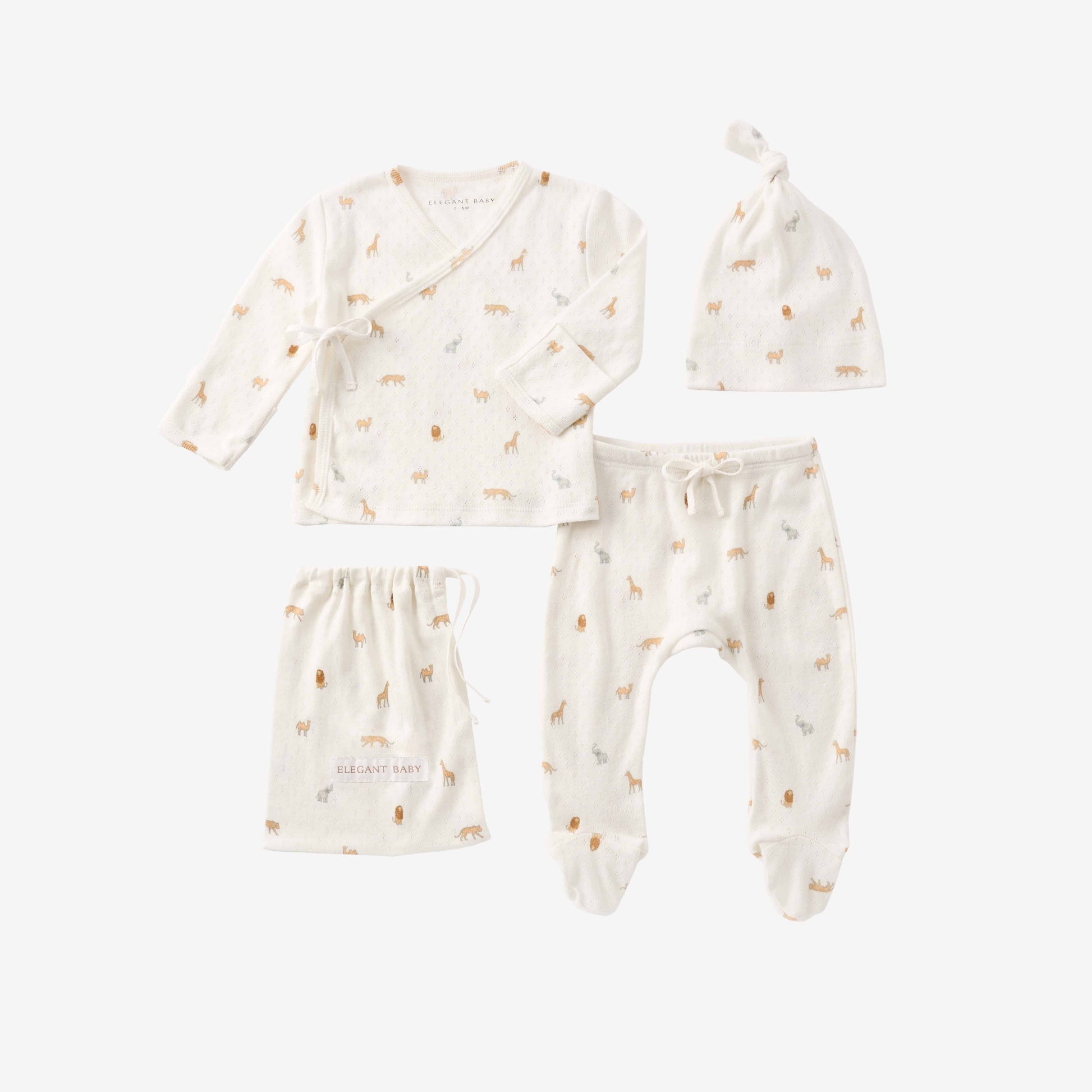 Neutral Safari Print Organic Cotton Pointelle Layette 3 Pc Gift Set