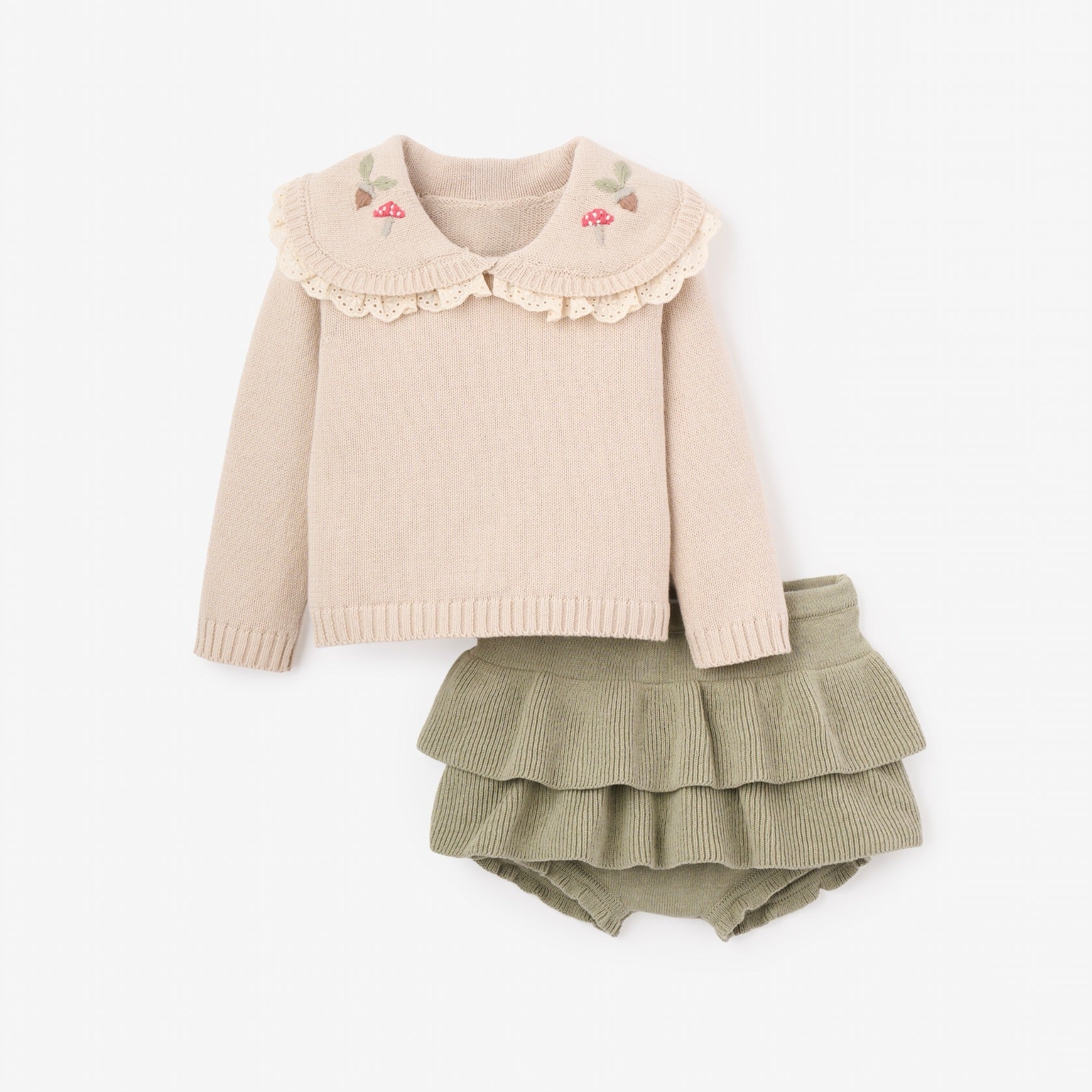 Mushroom Embroidered Collar Sweater + Skirt Set