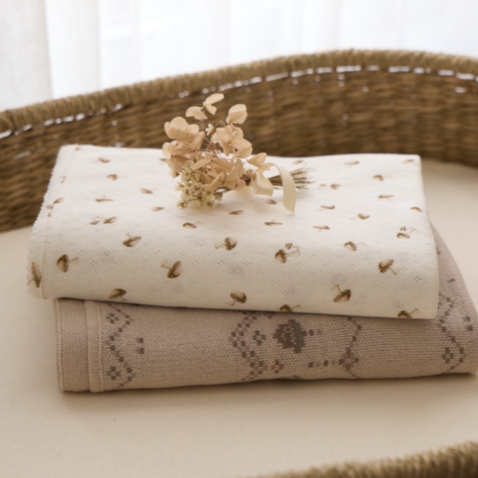 So soft and comforting, it's no wonder our collection of cotton baby blankets are always a go-to when searching for the perfect new baby gift. Featuring a sweet print on a dainty pointelle fabric, these organic cotton baby blankets offer function and variety. Perfect for swaddling or stroller rides. Pair with any of our organic cotton baby apparel for a perfect baby gift set.