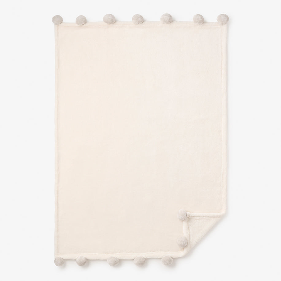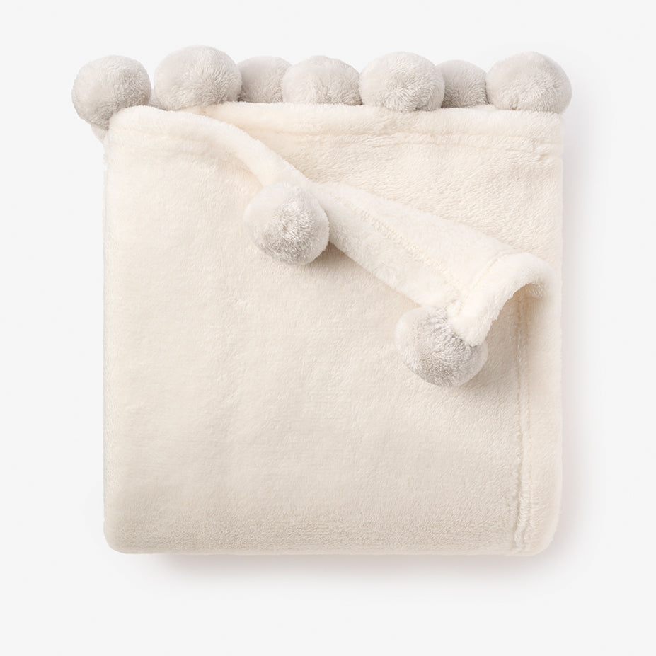 Pale Gray Pom Trim Fleece Baby Stroller Blanket