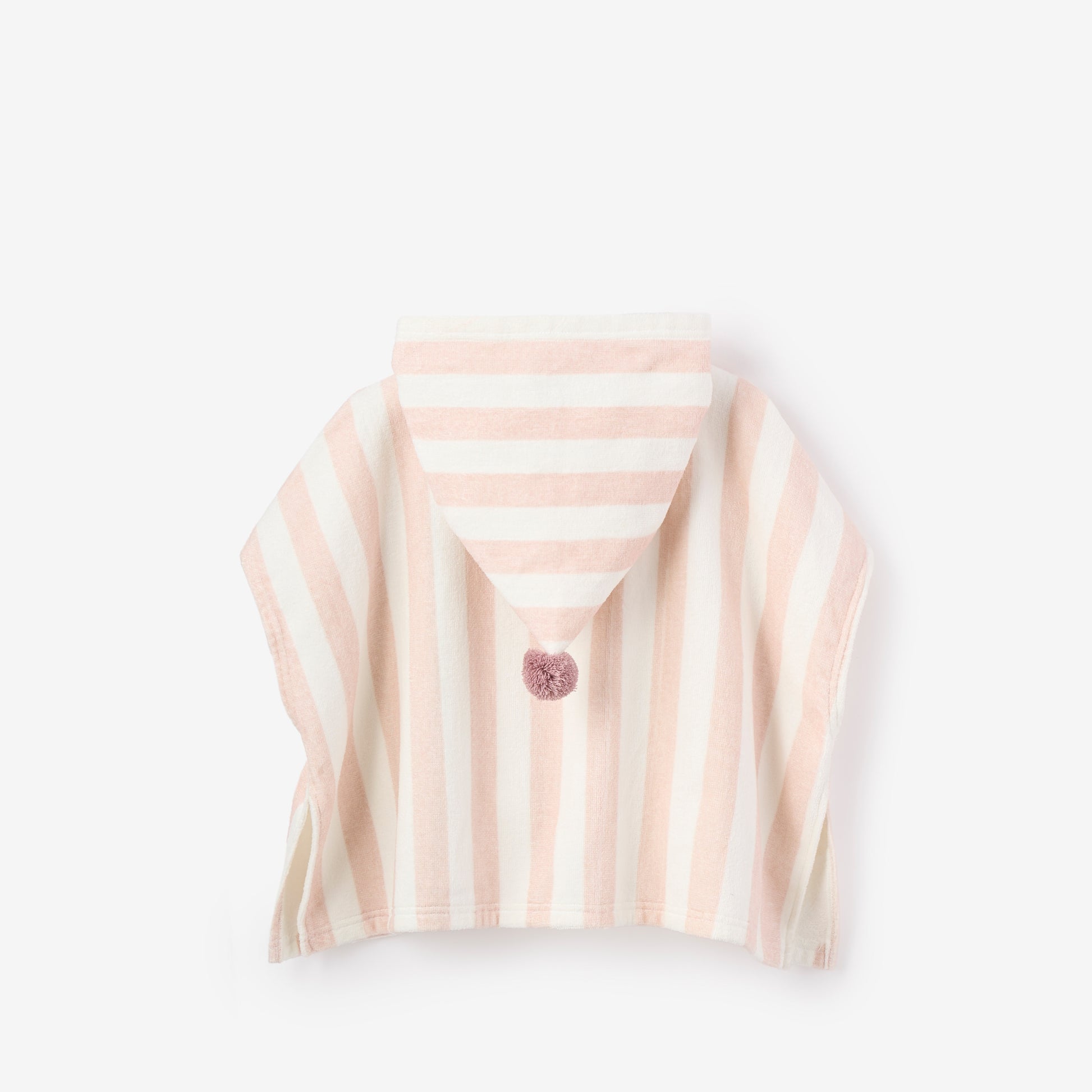 Crafted from soft, absorbent cotton terry, this cabana-striped poncho is a beach and poolside essential. Designed with an oversized fit, wide tacked sleeves, and a playful contrast pom-adorned hood, it grows with your child for years of sun-soaked adventures.