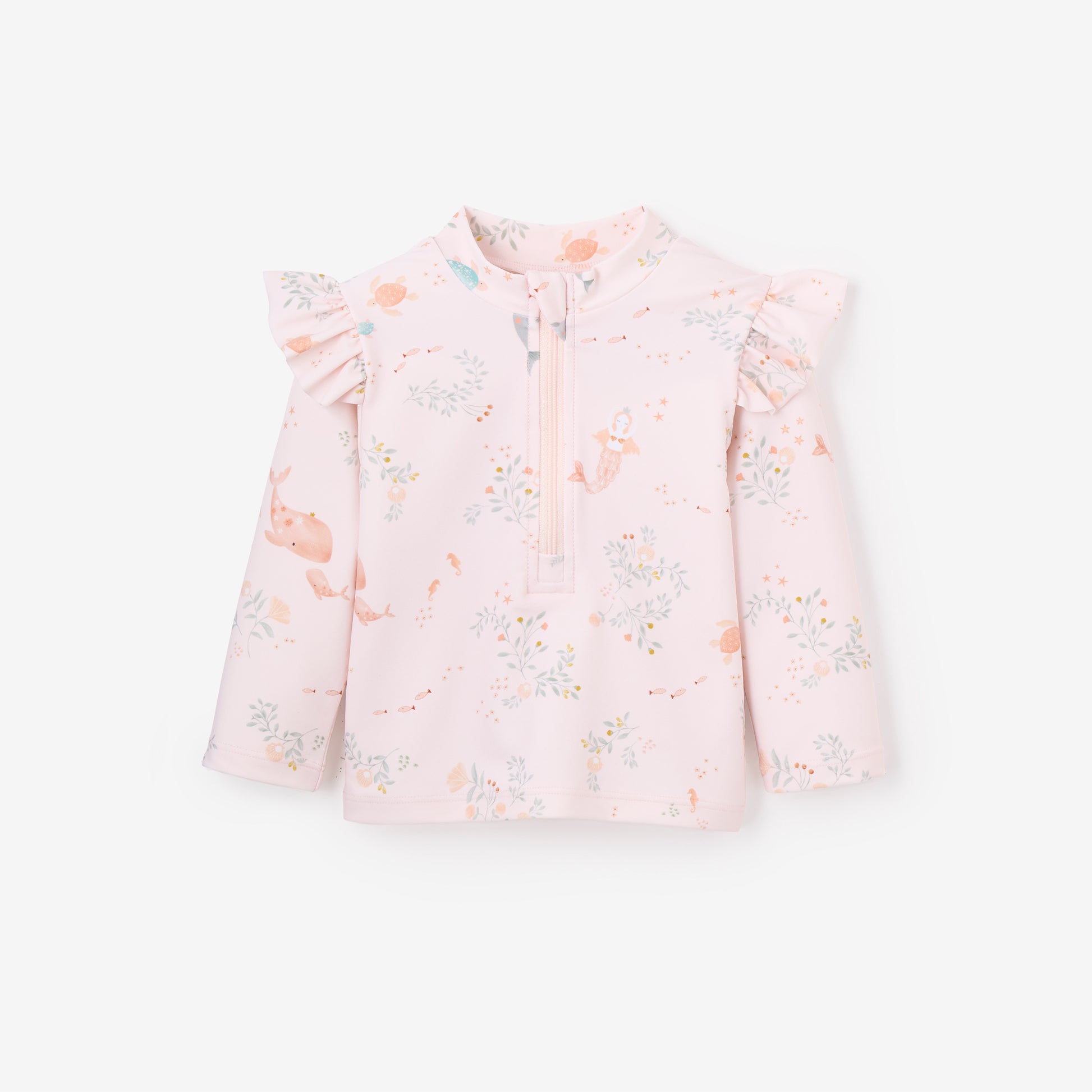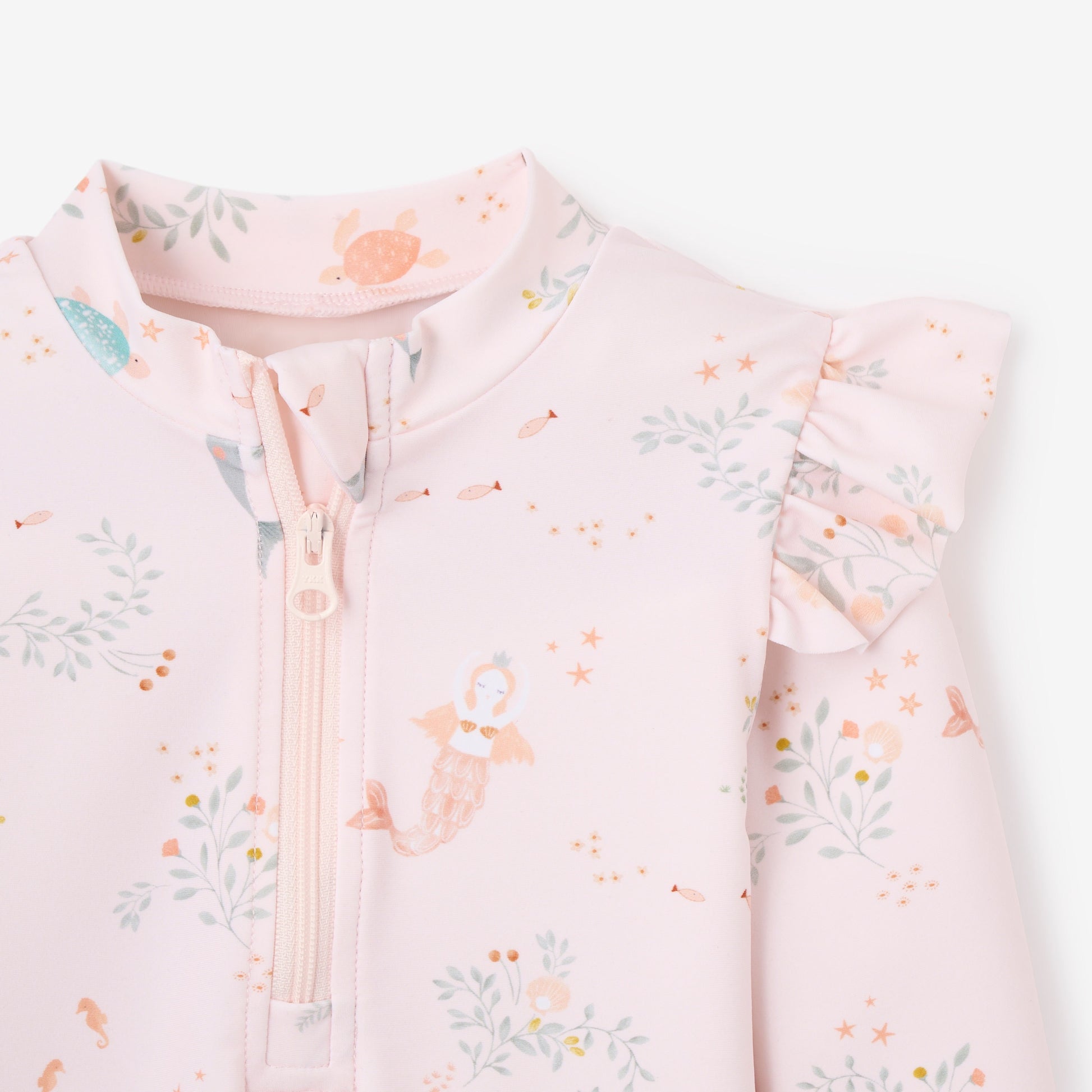 Made from high-quality, breathable fabric, our rash guard keeps your baby cool and comfortable, even on the hottest days. Featuring a playful mermaid print, the stretchy, UPF 50+ material allows for easy movement, while the flatlock seams prevent chafing, providing all-day comfort for your little one.