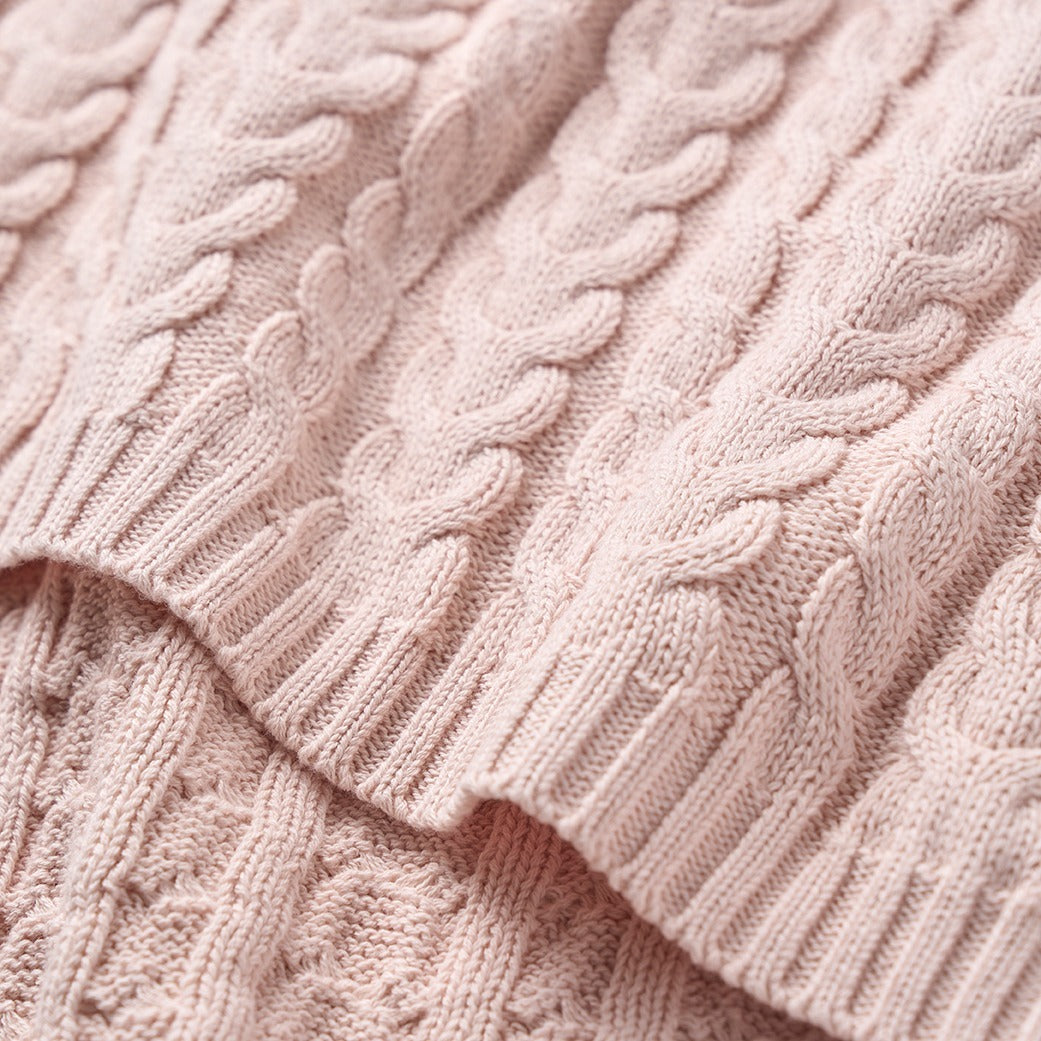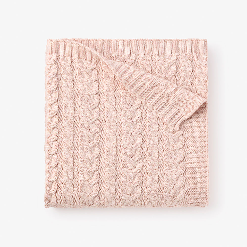 Pale Pink Horseshoe Cable Knit Baby Blanket
