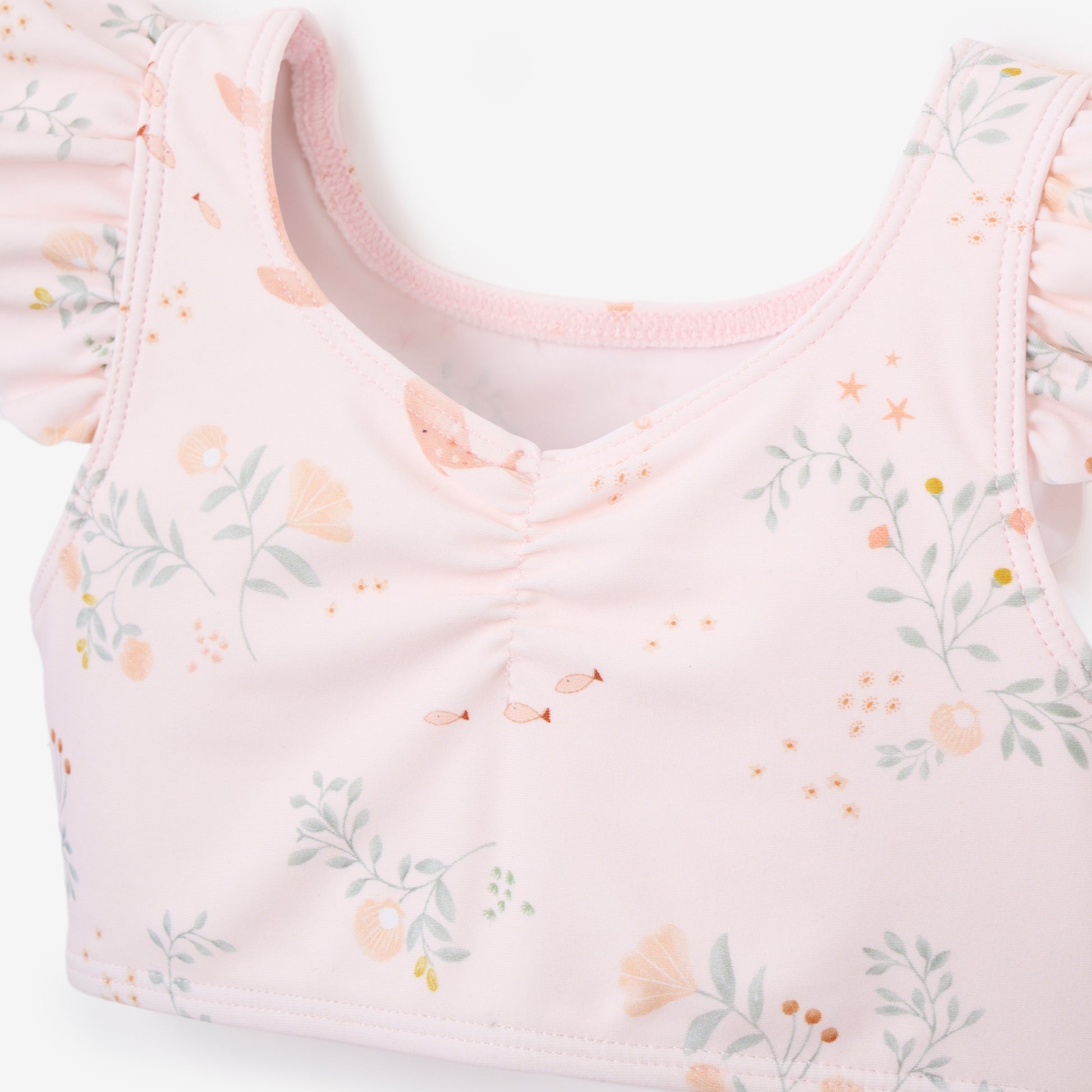 Crafted with care and designed for maximum comfort and safety, this adorable swimsuit is a must-have for sunny days at the beach or pool. Featuring a playful mermaid print, our swim ruffle two piece adds a charming touch to your baby's swimwear ensemble. Made from high-quality, UPF 50+ fabric, this summer essential is lightweight and breathable, perfect for all-day wear in and out of the water.