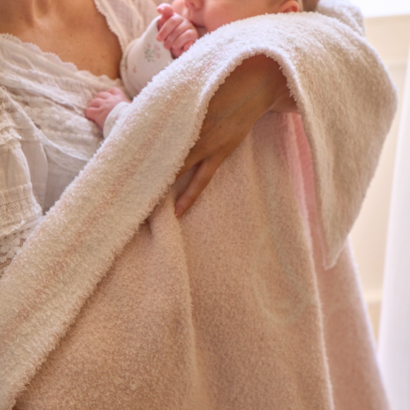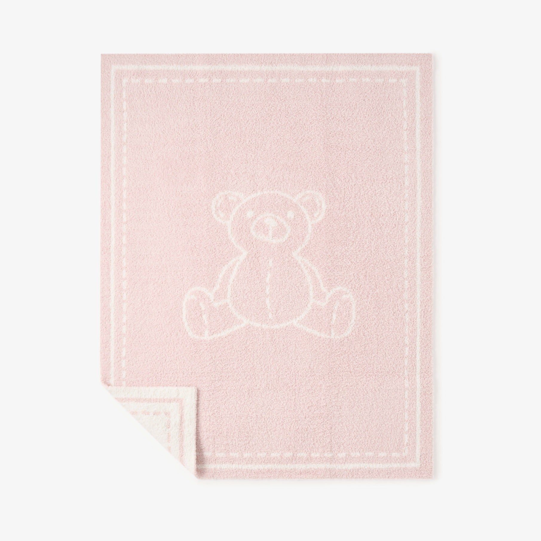 Pale Pink Teddy Bear Feather Knit Baby Blanket