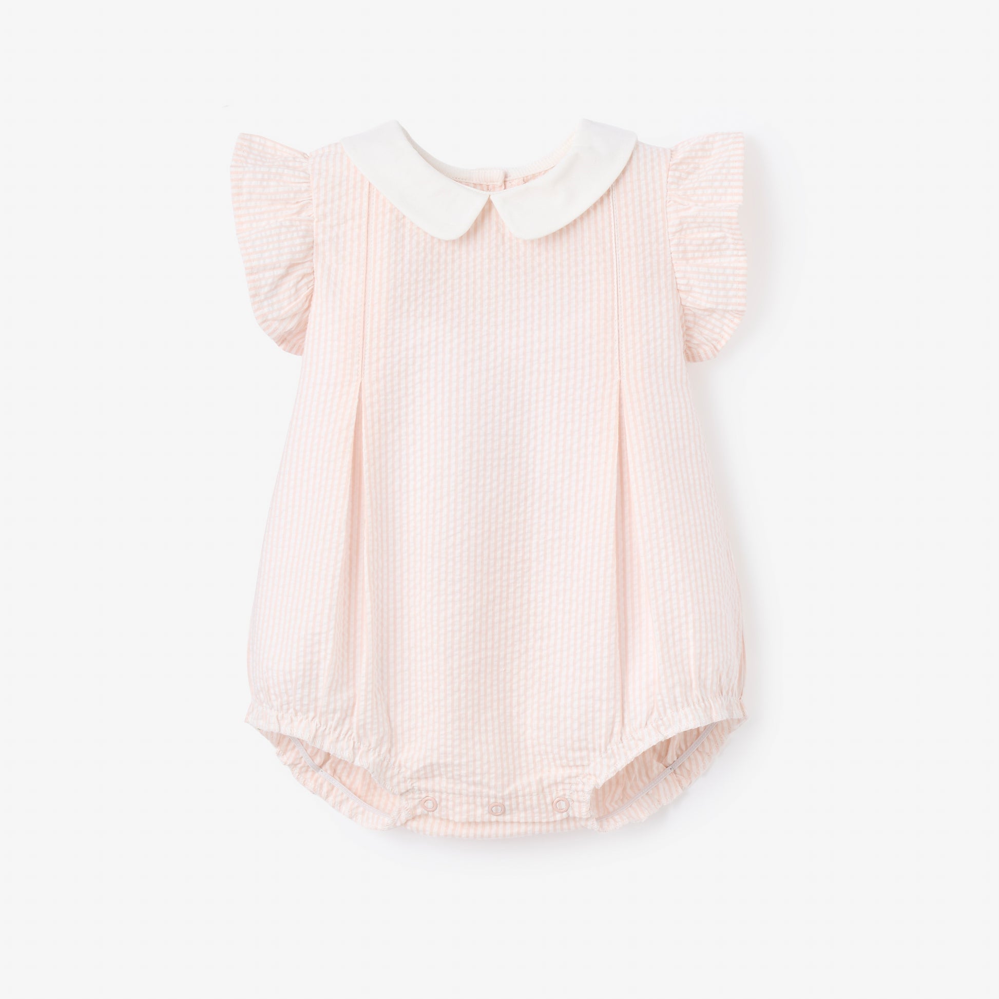 A spring classic made sweet and simple. This collared bubble features soft pink seersucker and a timeless silhouette designed for warm days, celebrations, and everyday charm. Designed to be monogrammed — a quiet detail that makes it theirs.
