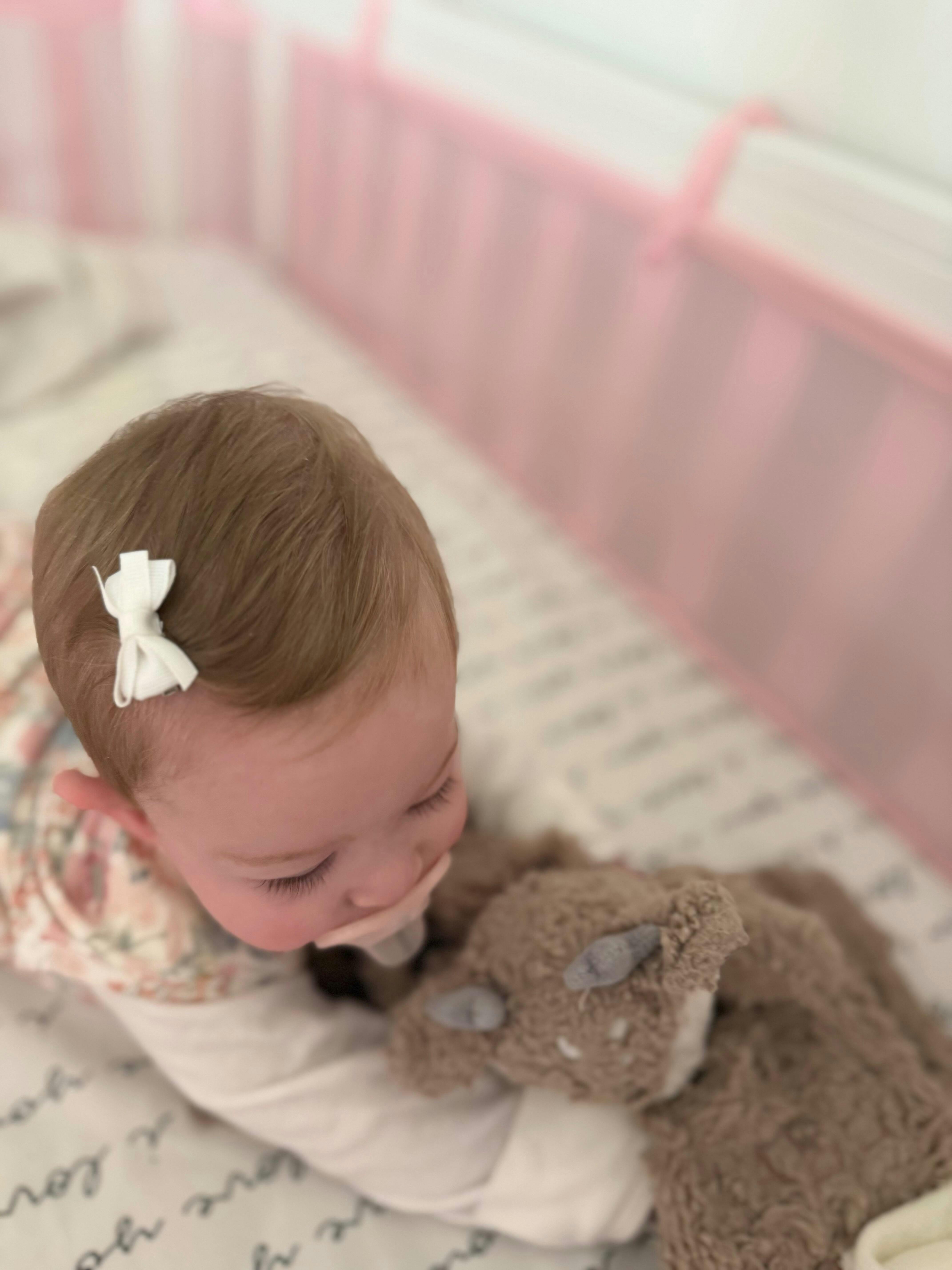 I bought this for my daughter’s first Christmas was she was three months old. I thought she might be a little younger to be attached to a blankie but I thought it was a sweet first Christmas gift and let me tell you, my daughter doesn’t go anywhere without it! She just turned one and she has slept with it every night since she got it. It is soft and cute. We have to buy a second one to keep on hand for emergencies in case we ever lose this one! It really is the perfect lovey 💜