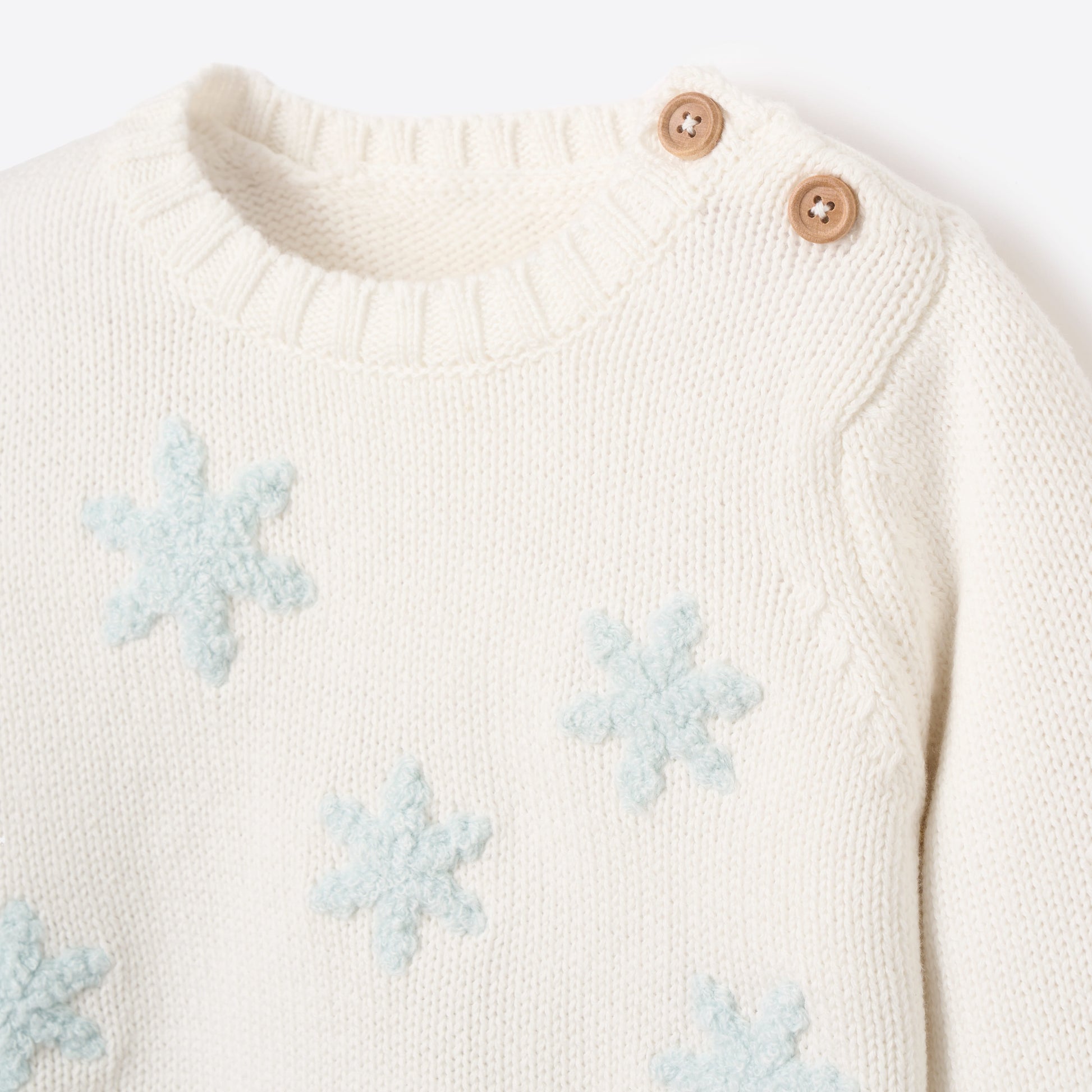 little one in love with our arctic-inspired set, featuring a winter white knit