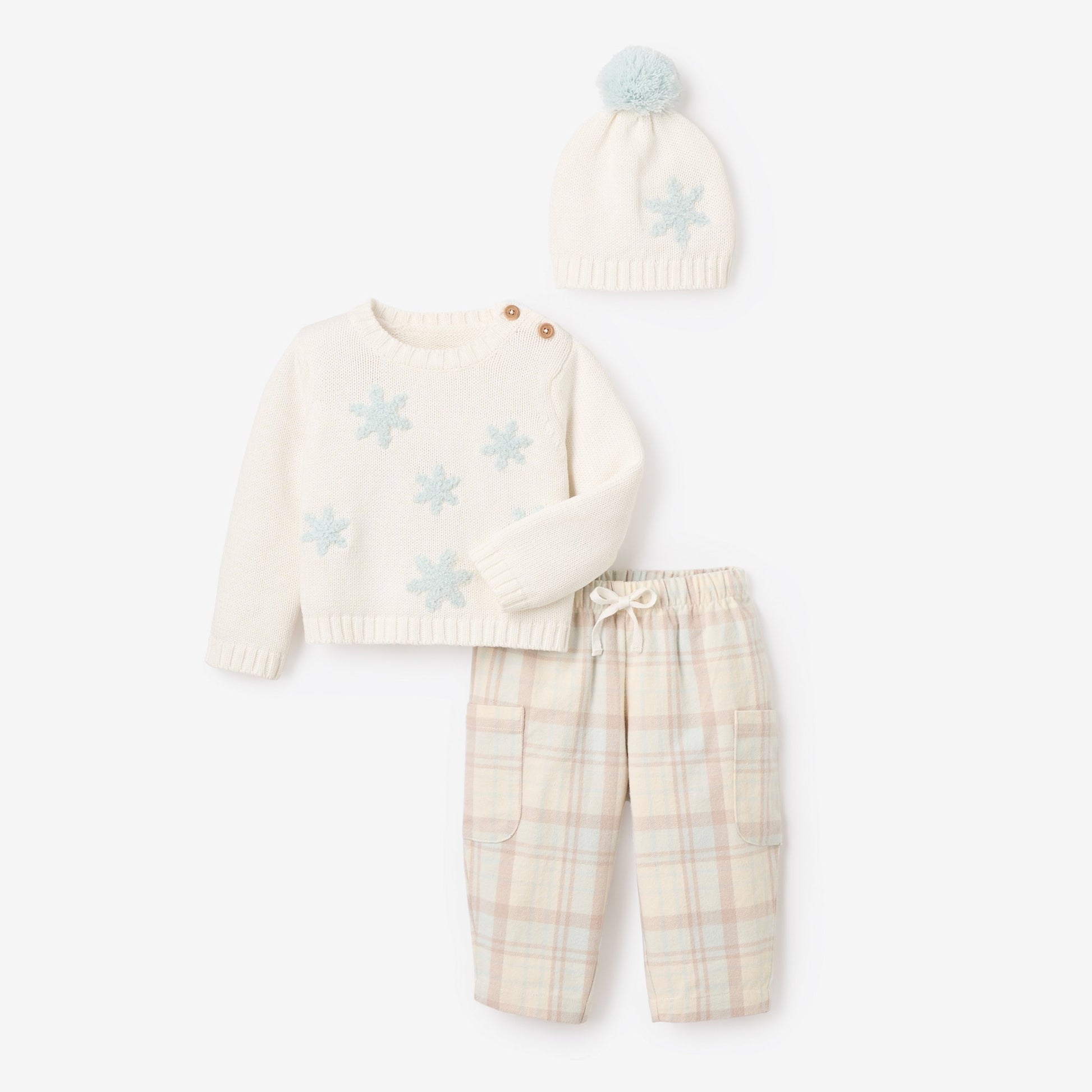 Snowflake Sweater Pant Set & Pom Hat