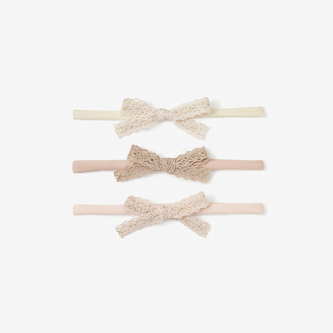 What little girl doesn't love a little sparkle? Our 3-pack Sparkle Lace Bow Baby Headband is made with a soft, stretchy nylon band with a coordinating lace bow in neutral colors to coordinate with just about every outfit. It's an elegant, classic accessory that fits babies 0-12 months. Make it an extra special gift by pairing it with our Floral Non-Slip Baby Sock Set for more accessories!