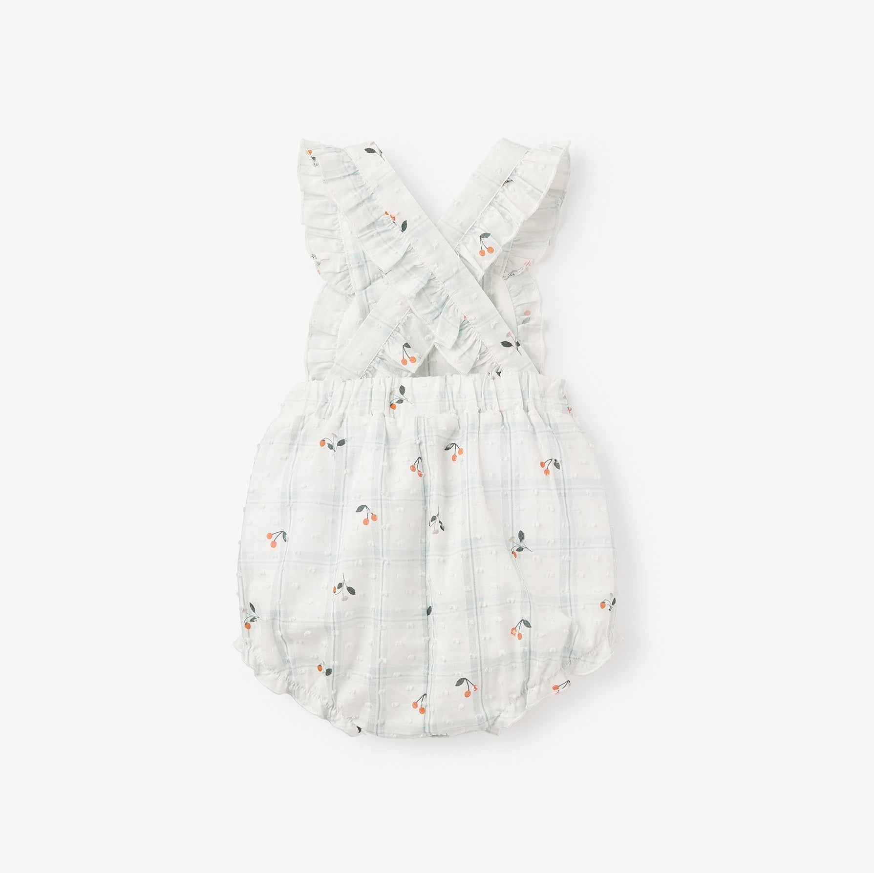 The perfect blend of comfort and style for your little girl's sunny adventures! With its charming cross-back design, this sunsuit not only offers easy dressing but also ensures a secure and comfortable fit for your active baby.