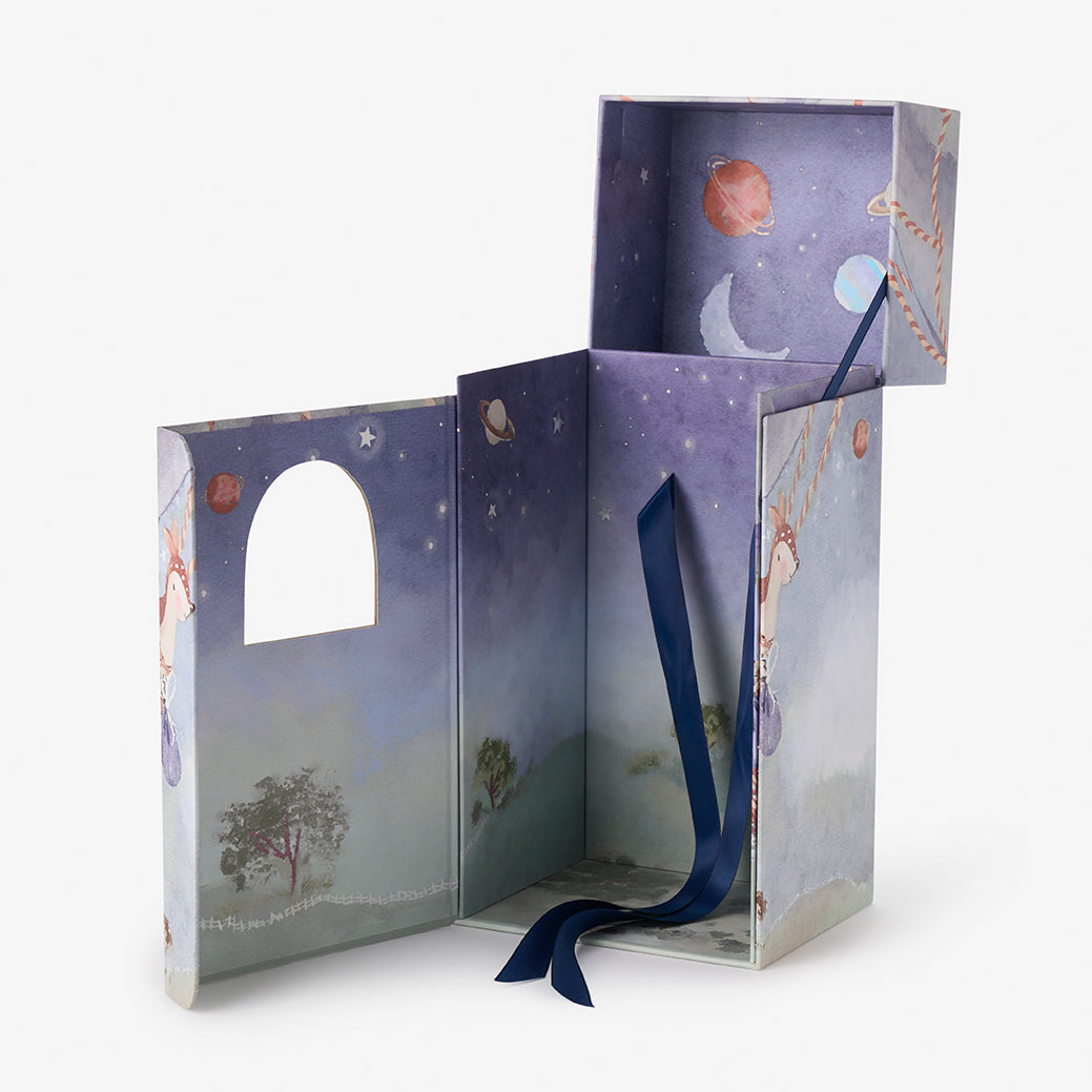 This beautiful adventure bear is designed to grow with baby. As their imagination develops, the removeable accessories and interactive box make for a wonderful playtime experience.
