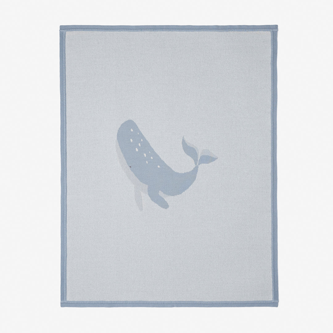 Elegant Baby is known for our signature jacquard knit baby animal blankets, and our Whale Cotton Knit Baby Blanket is one of our best sellers. It's playful, soft and lovingly made with a mid-weight 100% cotton jacquard print with an adorable blue whale. Our blanket can go anywhere and is machine washable. It's the perfect baby accessory! Pair it with our coordinating Whale Striped Knit Shortall Romper or Whale Striped Knit Short Set to create a themed gift. We offer a range of knit baby blankets to choose from so you can match to baby's nursery or favorite family animal.