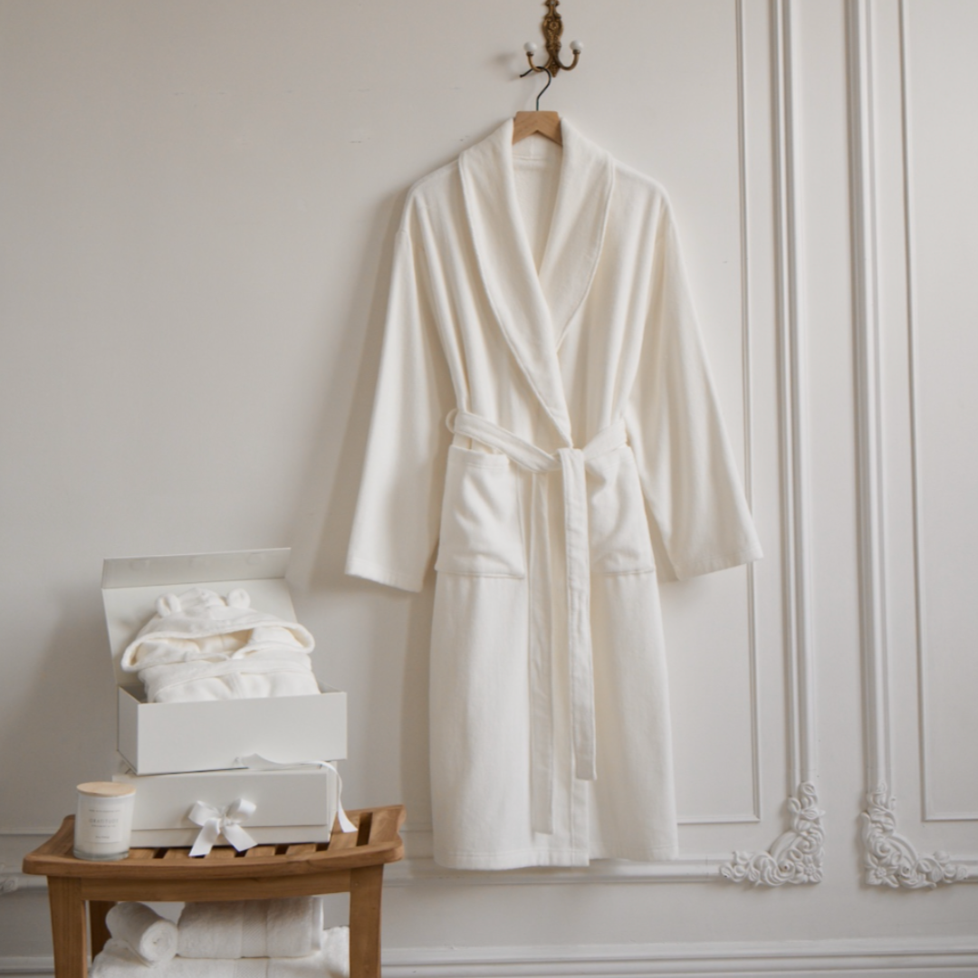 Made with 100% cotton velour terry for optimal quality & softness, this hooded terry bath robe is the ultimate luxury gift for any mom.